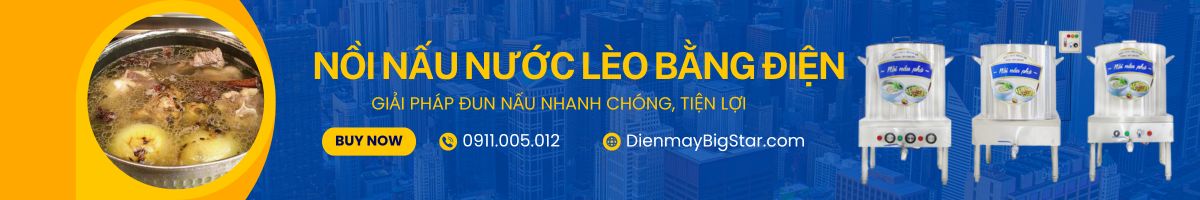 Khác với phương pháp nấu truyền thống bằng bếp gas hay bếp than, nồi nấu nước lèo bằng điện giúp tiết kiệm thời gian, chi phí, đảm bảo an toàn vệ sinh thực phẩm và giữ được hương vị nước lèo thơm ngon, trọn vẹn. 🔥 Gia nhiệt nhanh, rút ngắn thời gian nấu. 🔌 Tiết kiệm điện năng nhờ công nghệ gia nhiệt thông minh (thanh điện trở hoặc mâm nhiệt) ✅ Chất liệu inox 304 cao cấp, không gỉ, dễ vệ sinh. 🛡️ An toàn tuyệt đối nhờ hệ thống tủ điện rời, chống giật. 🔊 Vận hành êm ái, không gây tiếng ồn khó chịu. 🎯 Điều chỉnh nhiệt độ linh hoạt với núm vặn dễ sử dụng. 🛠️ Dễ dàng tháo lắp, vệ sinh nhanh chóng. 🌡️ Giữ nhiệt ổn định, hạn chế hao hụt nhiệt năng. ✔️ Chủ động nguồn nước lèo, phục vụ khách hàng nhanh chóng. ✔️ Tiết kiệm chi phí nhiên liệu, giảm nguy cơ cháy nổ. ✔️ Vệ sinh dễ dàng, đảm bảo an toàn thực phẩm. ✔️ Điều chỉnh nhiệt độ chính xác, giữ trọn hương vị nước lèo. ✔️ Phù hợp với nhiều quy mô kinh doanh, từ quán ăn nhỏ đến nhà hàng lớn. Điện máy BigStar là đơn vị chuyên cung cấp các dòng nồi nấu nước lèo bằng điện nói riêng và các dòng máy chế biến công nghiệp nói chung, đã có hơn 10 năm kinh nghiệm và là đối tác uy tín, tin tưởng của nhiều doanh nghiệp lớn nhỏ trên cả nước. Lợi ích khi mua hàng tại Điện máy BigStar ✅ Cam kết chất lượng sản phẩm chính hãng, đạt chuẩn ✅ Giá thành cạnh tranh nhất thị trường, giá gốc tận kho ✅ Chính sách bảo hành rõ ràng từ 12-18 tháng tùy sản phẩm, dịch vụ hậu mãi uy tín ✅ Tư vấn tận tình, giao hàng nhanh chóng ✅ Hỗ trợ thiết kế riêng theo yêu cầu của quý khách ✅ Giao hàng trên toàn quốc, miễn phí ship nội thành bán kính 20km, lắp đặt tận nơi. Lưu ý: Bảng giá có thể thay đổi tùy vào từng thời điểm trong năm, để được báo giá chính xác và nhanh nhất, xin hãy liên hệ trực tiếp với chúng tôi. Trả lời: Nồi nấu nước lèo bằng điện cực kỳ đa năng, ngoài nấu nước lèo phở, nồi còn được sử dụng để: Ninh xương, hầm thịt: Gia nhiệt ổn định giúp xương chín mềm, nước trong, ngọt vị. Nấu nước sôi để trụng bánh phở, hủ tiếu, bún. Luộc gà, luộc vịt, luộc rau, luộc trứng với số lượng lớn. Nấu nước chấm, nước dùng các món bún bò, bún riêu, bún cá, bún thái… Đun nước để rửa bát, vệ sinh dụng cụ trong quán ăn. Nấu cháo, nấu súp, nước sâm hoặc các loại nước uống công nghiệp. 👉 Đây là lý do các quán ăn, nhà hàng chọn mua nồi điện vì có thể tận dụng cho nhiều mục đích nấu nướng khác nhau. Trả lời: Thời gian đun sôi phụ thuộc vào dung tích nồi và công suất của hệ thống gia nhiệt. Trung bình sẽ mất tầm 30-90 phút cho dung tích từ 20-500L. 🔥 Nếu sử dụng nước ấm từ vòi nóng lạnh, thời gian sôi sẽ rút ngắn đáng kể. Trả lời: Hoàn toàn được. Nồi được trang bị nút vặn chỉnh nhiệt độ linh hoạt từ 30 – 110 độ C. Bạn có thể chỉnh: Nhiệt độ sôi để ninh xương nhanh. Nhiệt độ ủ để giữ nóng nước lèo trong suốt quá trình bán. 👉 Chủ động điều chỉnh nhiệt độ giúp nước lèo không bị sôi trào, không mất chất dinh dưỡng. Trả lời: Nếu sử dụng đúng cách, nồi sẽ không bị cháy đáy. Mâm nhiệt/ thanh nhiệt của nồi thường nằm sát đáy, tuy nhiên, với thiết kế hiện đại, khi có đủ nước, mâm nhiệt sẽ gia nhiệt đều và không gây cháy. Nếu để cạn nước, mâm nhiệt sẽ sinh nhiệt trực tiếp, có thể làm cháy đáy và gây hỏng. 👉 Lưu ý: Luôn kiểm tra mực nước trước khi vận hành. Sử dụng đúng nguồn điện yêu cầu và không để nước cạn trong quá trình nấu. Nếu quý khách có nhu cầu tư vấn cũng như mua nồi nấu nước lèo bằng điện, xin vui lòng liên hệ ngay với Điện máy BigStar qua số Hotline: 0911.005.012. Đội ngũ nhân viên tại Điện máy BigStar luôn hỗ trợ quý khách tận tình, tư vấn chi tiết nhất. Điện máy BigStar hân hạnh được phục vụ quý khách!