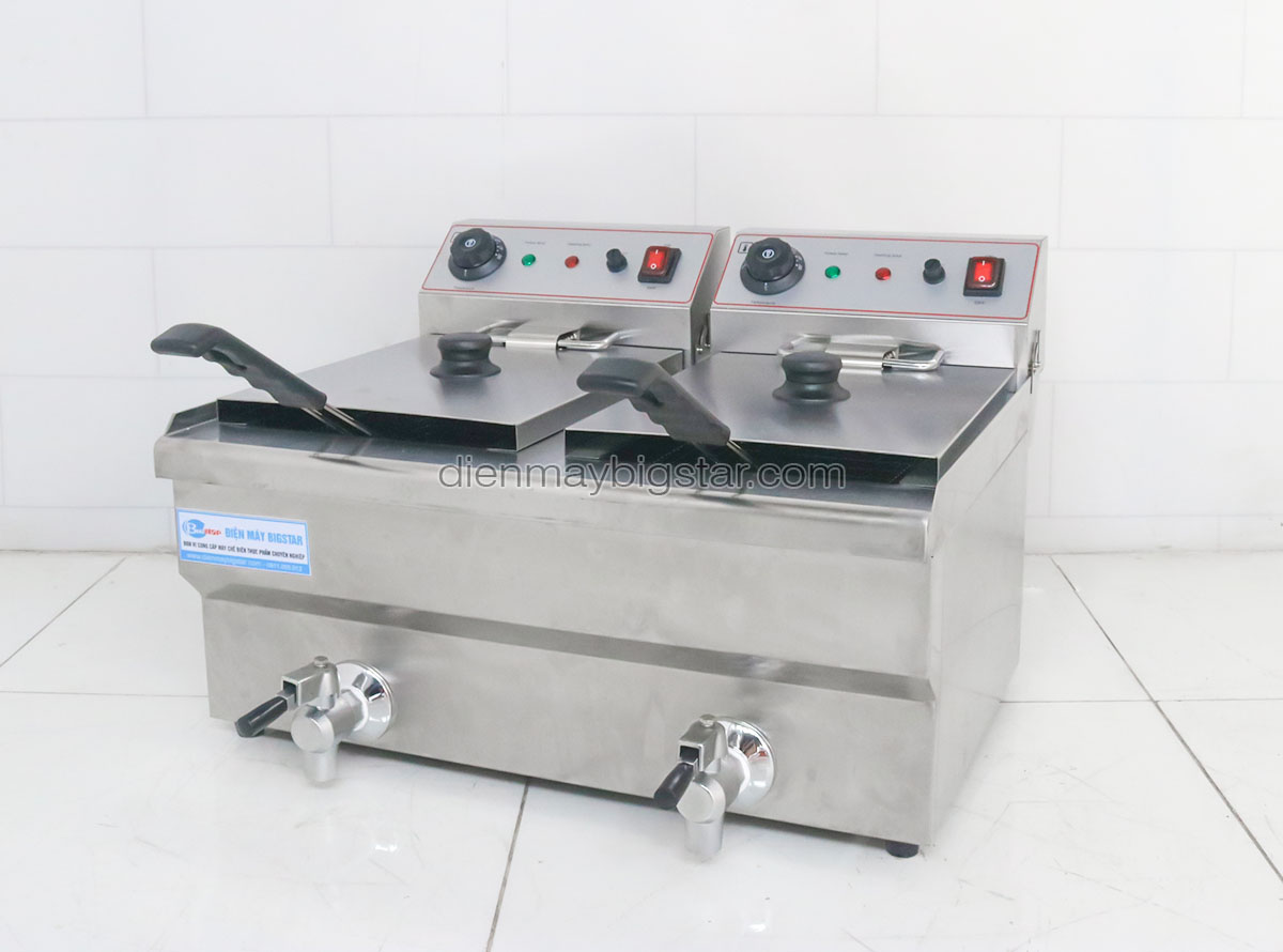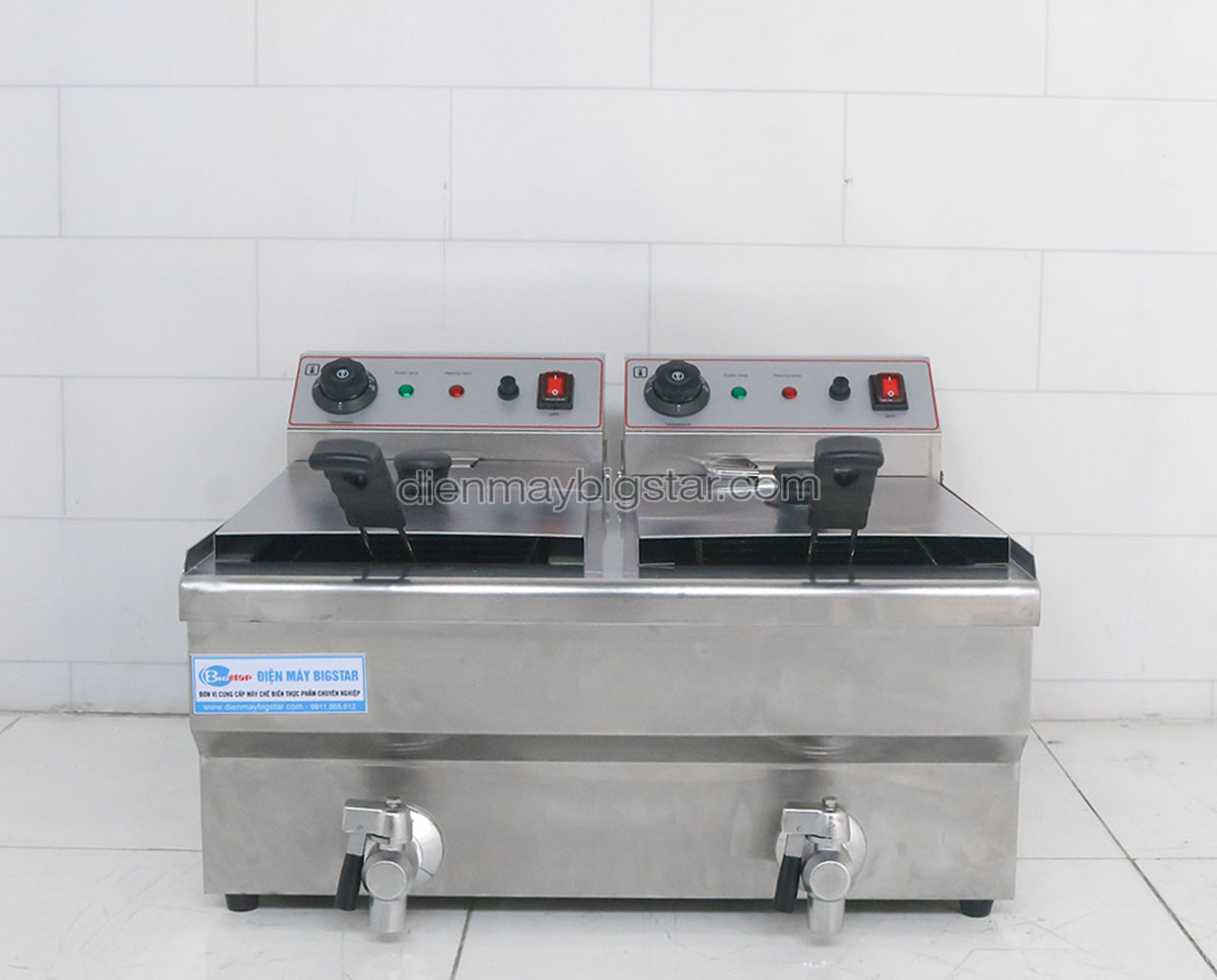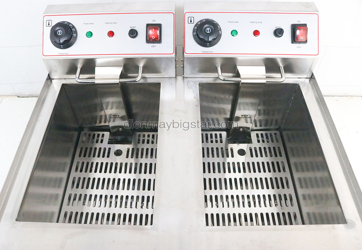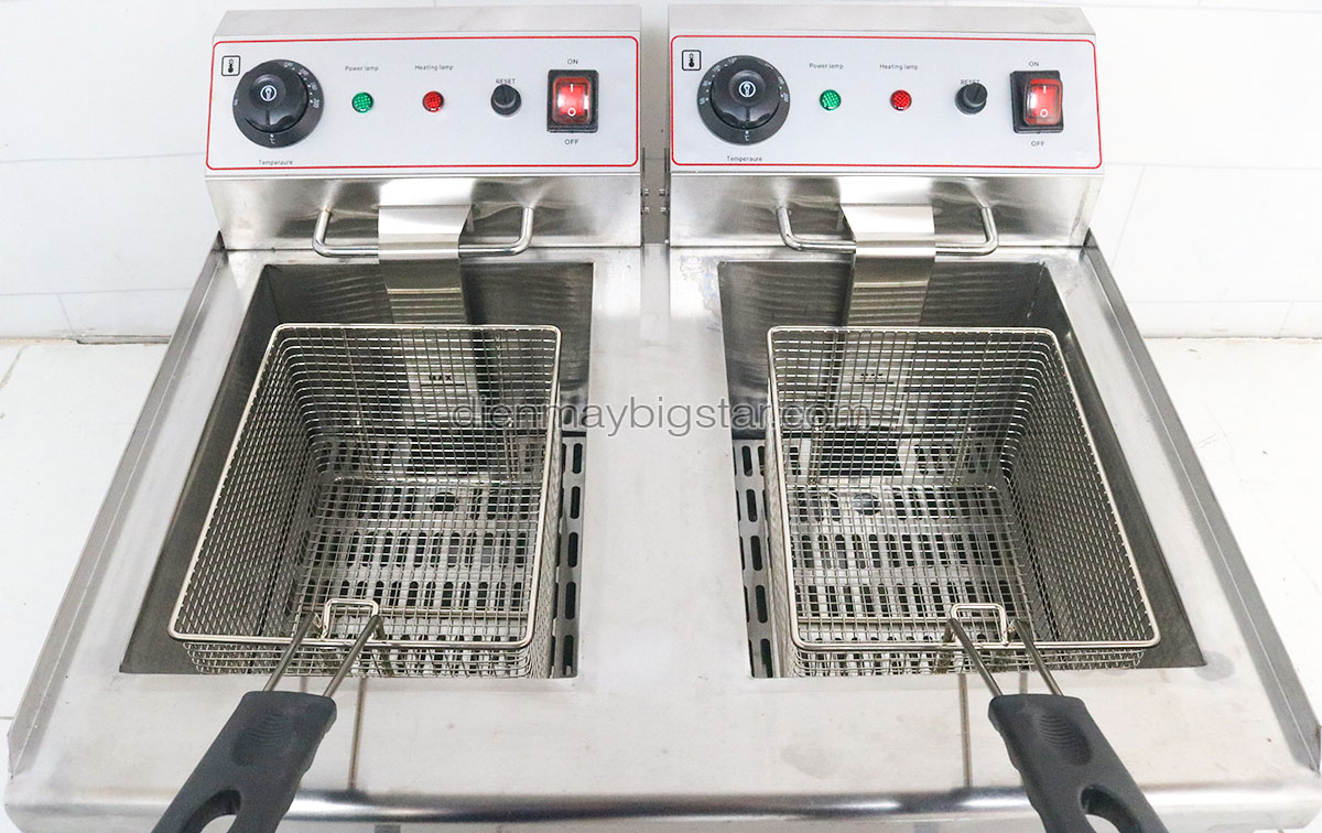 Bếp chiên nhúng điện đôi EF-102V là thiết bị hiện đại hỗ trợ trong việc chiên nhúng các thực phẩm khác nhau. Sản phẩm có giá thành rẻ, chất lượng tốt chắc chắn sẽ làm bạn hài lòng. Bếp chiên nhúng điện đôi EF-102V đang được sử dụng phổ biến tại các quán bánh đồ ăn vặt, siêu thị, nhà hàng,… Việc sử dụng bếp giúp có thể chiên được số lượng lớn thực phẩm trong thời gian ngắn, tiết kiệm được rất nhiều thời gian, công sức. Bên cạnh đó với dung tích lớn đảm bảo được nhu cầu phục vụ số lượng khách lớn trong giờ cao điểm của quán.