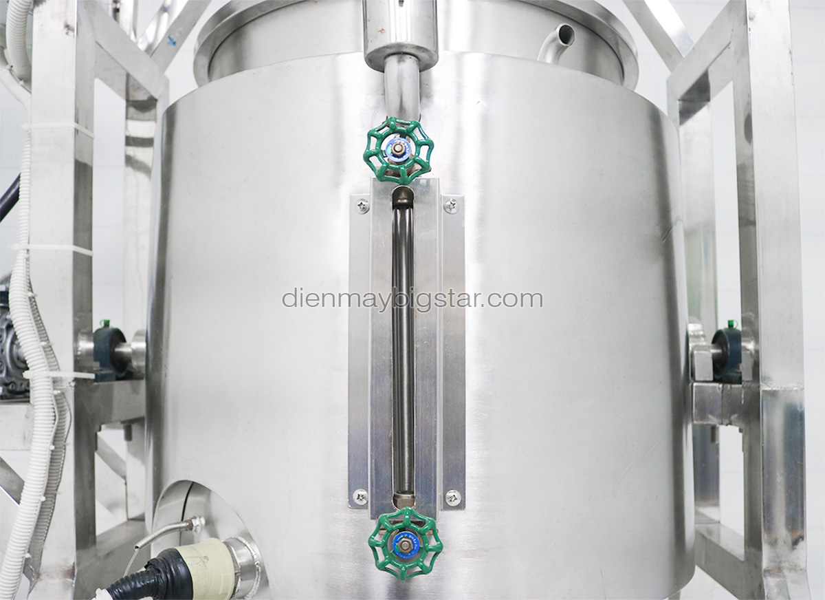 + Nồi được trang bị cánh khuấy đảo tự động, đảo đều liên tục trong suốt quá trình nấu, vét sát đáy và thành nồi, giúp nguyên liệu chín đều, không bị khê cháy hay bám cặn. Nhờ đó chất lượng thành phẩm luôn đồng đều giữa các mẻ.