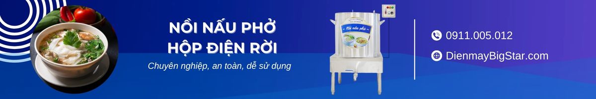 🔸 An toàn vượt trội: Tủ điện được thiết kế rời giúp hạn chế tối đa tình trạng rò rỉ điện, cháy nổ, đặc biệt phù hợp với môi trường bếp ẩm ướt. 🔸 Dễ dàng bảo trì, sửa chữa: Khi gặp sự cố về điện, chỉ cần kiểm tra hoặc thay thế phần tủ điện mà không cần di dời toàn bộ nồi. 🔸 Sử dụng linh hoạt: Có thể lắp đặt tủ điện ở vị trí thuận tiện, dễ quan sát, dễ thao tác điều chỉnh nhiệt độ. 🔸 Gia nhiệt nhanh – tiết kiệm điện năng: Sử dụng thanh nhiệt cao cấp, gia nhiệt nhanh chóng, giữ nhiệt tốt, tiết kiệm điện. 🔸 Chất liệu inox bền bỉ: Thân nồi được làm từ inox 304 cao cấp, chống gỉ sét, dễ vệ sinh, tuổi thọ cao. 🔸 Đa dạng dung tích: Có nhiều dung tích từ 20L, 30L, 50L, 70L, 100L, 120L đến 300L đáp ứng mọi nhu cầu sử dụng từ quán ăn nhỏ đến bếp công nghiệp lớn. Điện máy BigStar là thương hiệu đã có hơn 10 năm kinh nghiệm chuyên cung cấp máy chế biến công nghiệp, thiết bị đông mát, thiết bị bếp công nghiệp cho nhà hàng, khách sạn, quán ăn với uy tín hàng đầu tại Việt Nam. Tất cả các dòng nồi nấu phở hộp điện rời tại BigStar đều được gia công từ inox 304 dày dặn, bền bỉ, không gỉ sét, đảm bảo an toàn vệ sinh thực phẩm. Điện máy BigStar là đơn vị trực tiếp sản xuất và phân phối nên giá cả luôn cạnh tranh, không qua trung gian. Lưu ý: Bảng giá có thể thay đổi tùy vào từng thời điểm trong năm, để được báo giá chính xác và nhanh nhất, xin hãy liên hệ trực tiếp với chúng tôi. Vì sao nồi nấu phở hộp điện rời an toàn hơn nồi nấu phở điện liền trong môi trường bếp ẩm ướt? Trả lời: Nồi hộp điện rời được thiết kế tách biệt hoàn toàn tủ điện và thân nồi, hạn chế tối đa hiện tượng hơi nước bốc lên làm ẩm, chập cháy linh kiện điện. Khi đặt hộp điện cách xa nguồn nước, người dùng sẽ tránh được nguy cơ giật điện khi thao tác nấu nướng trong môi trường bếp ẩm thấp. Có thể sử dụng nồi nấu phở hộp điện rời để nấu những món ăn khác ngoài nước phở không? Trả lời: Có. Nồi phở hộp điện rời ngoài nấu phở còn có thể nấu bún bò, nấu hủ tiếu, nấu canh, luộc thịt, trụng bún, nấu nước sôi hoặc nấu các loại nước dùng khác. Khi chọn dung tích và công suất phù hợp, nồi có thể sử dụng đa năng cho nhiều mục đích. Nếu quý khách có nhu cầu tư vấn cũng như mua nồi nấu phở hộp điện rời, xin vui lòng liên hệ ngay với Điện máy BigStar qua số Hotline: 0911.005.012. Đội ngũ nhân viên tại Điện máy BigStar luôn hỗ trợ quý khách tận tình, tư vấn chi tiết nhất. Điện máy BigStar hân hạnh được phục vụ quý khách!Ưu điểm nổi bật của nồi nấu phở hộp điện rời