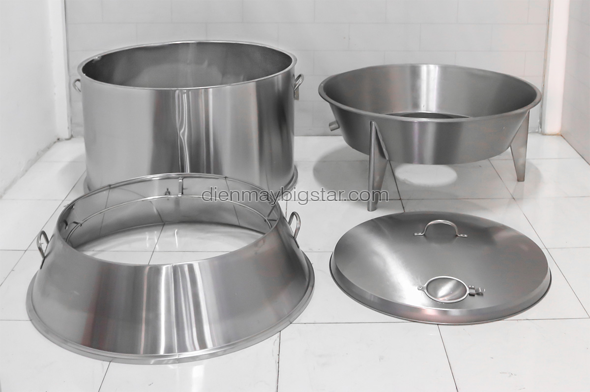Trả lời: Thường là Inox không gỉ cao cấp (có thể có thêm kính cường lực), giúp chịu nhiệt tốt và dễ vệ sinh.